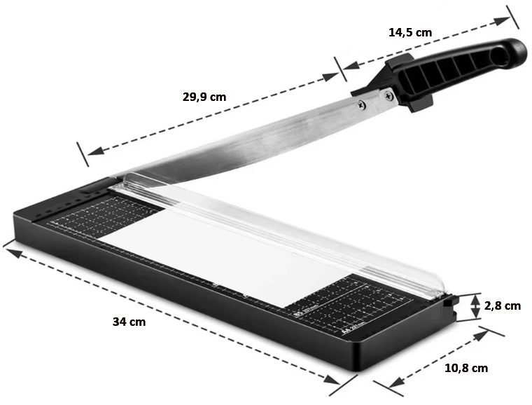 - Rozměr řezačky: cca 29,9 x 14,5 x 34 x 10,8 x 2,8 cm (viz fotografie produktu)
