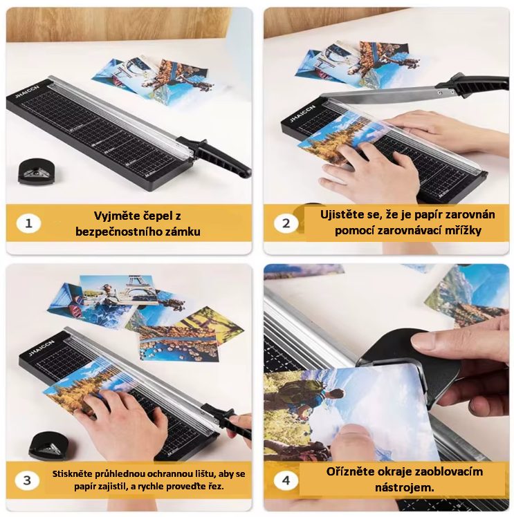 - Vhodná pro papír, fotografie, kartičky i tenčí karton