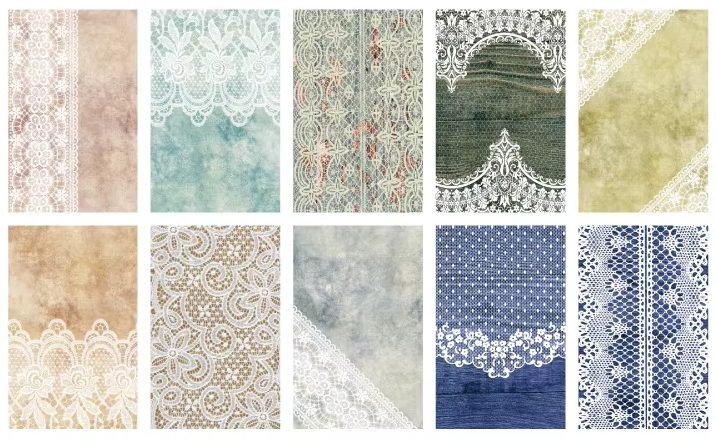 • Styl: vintage, krajkové motivy, jemné textury vhodné pro romantické, nostalgické projekty.