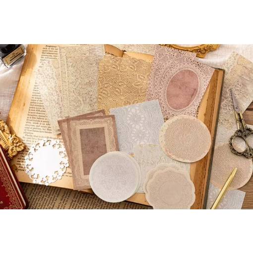 Ponořte se do kouzelného světa vintage scrapbookingu s touto sadou 30 kusů krajkového dekorativního papíru! Každý list je pečlivě navržen tak, aby přinesl úchvatný romantický nádech do vašich projektů — ideální jako podklad, výplň či ozdoba pro diáře, alba, přáníčka či jiná kreativní díla.