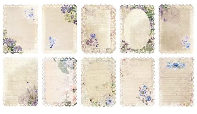 Oživte své papírové projekty elegantním vintage stylem s touto sadou 10 velkých krajkových dekorativních papírů. Každý list je navržen s citem pro detail a přináší rustikální, romantický vzhled, ideální pro diáře, alba, bullet journal, přáníčka i další kreativní výtvory.