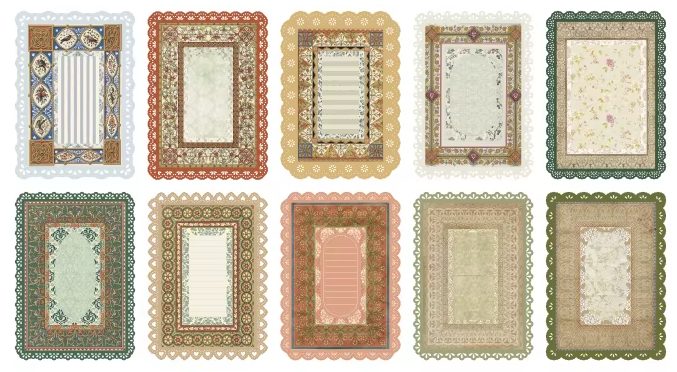 Oživte své papírové projekty elegantním vintage stylem s touto sadou 10 velkých krajkových dekorativních papírů. Každý list je navržen s citem pro detail a přináší rustikální, romantický vzhled, ideální pro diáře, alba, bullet journal, přáníčka i další kreativní výtvory.