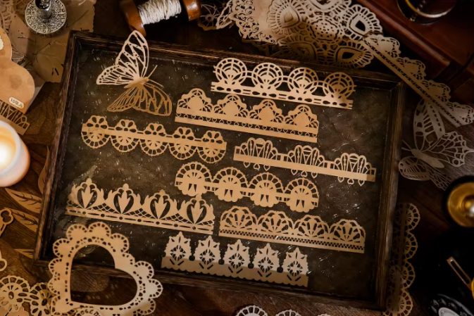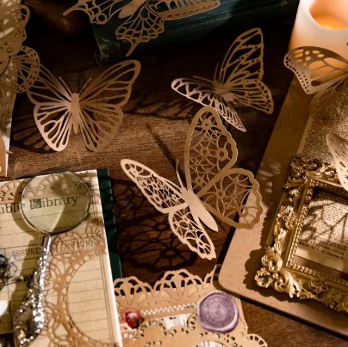 Díky detailnímu provedení s motýly a květinovými vzory se stanou krásným doplňkem každé stránky, přání nebo alba. Papír je lehký, snadno se lepí a můžete jej kombinovat s dalšími ozdobnými prvky.