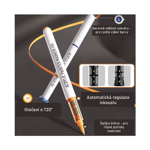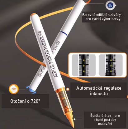 • Akrylový inkoust – voděodolný, rychleschnoucí a s vysokou kryvostí.