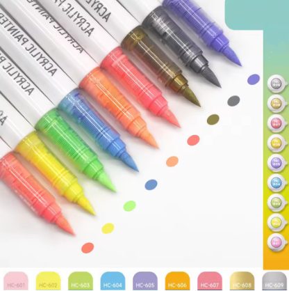 Balíček obsahuje jednu sadu devíti akrylových štětcových fixů.