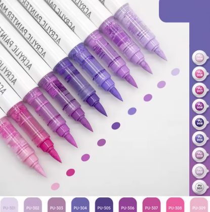 Scrapbooking akrylové štětcové fixy - Purple series, 9 kusů