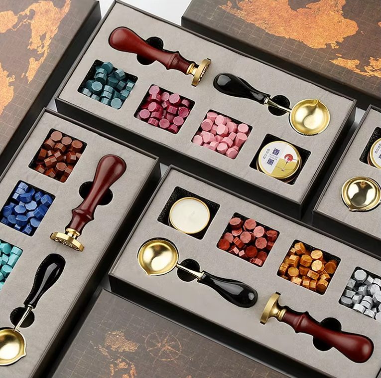 Každá pečeť je originál – stačí roztavit pár korálků, nalít vosk na papír nebo stuhu, otisknout razítko a nechat vychladnout. Výsledek? Nádherný detail, který zaujme na první pohled.