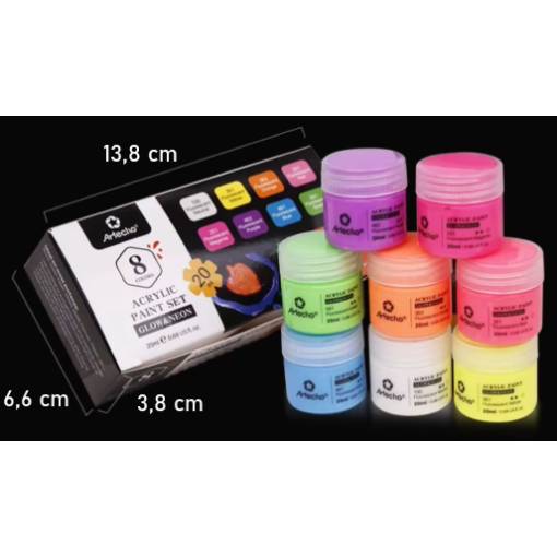 Balíček obsahuje jednu sadu neonových barev po osmi kusech.