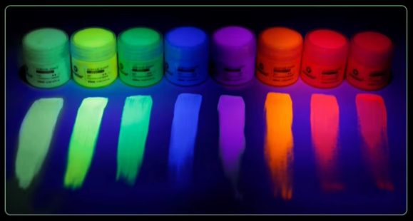 Sada neonových pigmentovaných barev přináší jedinečný efekt záře ve tmě, který dodá tvým stránkám, nápisům, dekoracím i ručně vyráběným doplňkům originální vzhled.