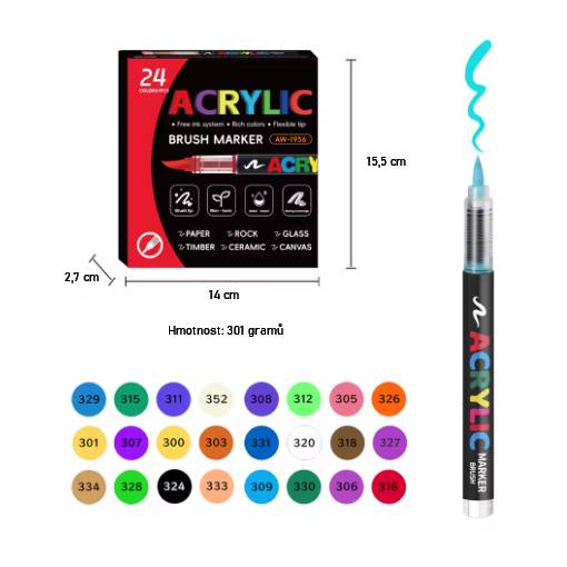 Balíček obsahuje jedno balení s 24 kusy barev.