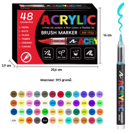 - Hmotnost jedné fixy: cca 11,9 gramů