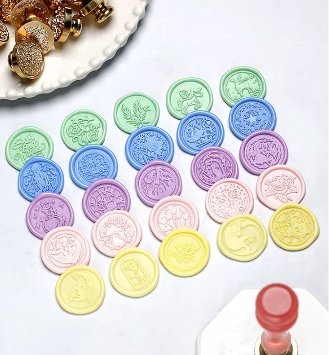 Voskové korálky se snadno používají – jednoduše je roztavíte, otisknete pečetní razítko a během několika vteřin získáte originální pečeť s osobitým kouzlem.