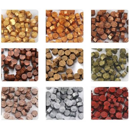 Voskové korálky se snadno používají – jednoduše je roztavíte, otisknete pečetní razítko a během několika vteřin získáte originální pečeť s osobitým kouzlem.