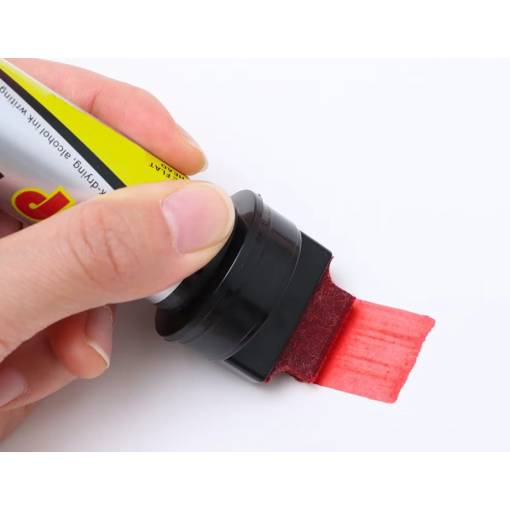 Pero pohodlně padne do ruky a umožňuje hladké psaní na jakýkoli neporézní povrch – například sklo, plast, kov, tabule, akrylát či laminované papíry. Inkoust je permanentní, voděodolný a sytý, takže vaše výtvory zůstanou dlouho krásné a čitelné.