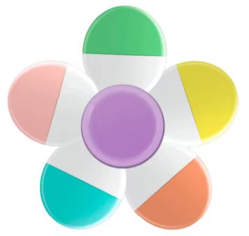 Spojuje v sobě klasickou funkci zvýrazňovače s relaxačním prvkem – rotujícím spinnerem, který pomáhá uvolnit napětí při studiu či práci.