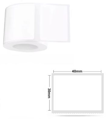 Scrapbooking role samolepících štítků do termotiskárny - Bílé, 40 x 30 mm