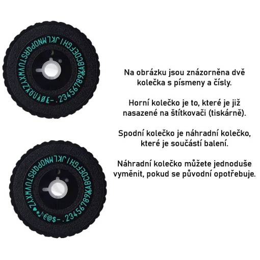 - Snadné použití: manuální ovládání zajišťuje přesný tisk písmen, číslic i symbolů.