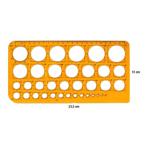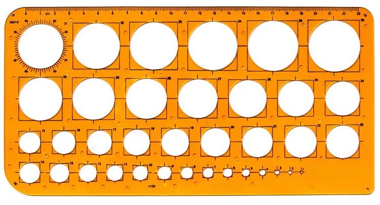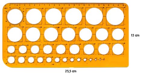 Umožňuje přesné rýsování kruhových a oválných tvarů v různých velikostech a zároveň slouží jako klasické pravítko.