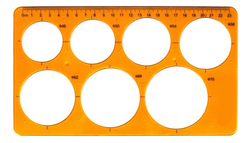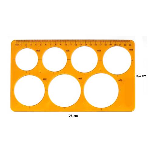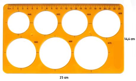 Umožňuje přesné rýsování kruhových a oválných tvarů v různých velikostech a zároveň slouží jako klasické pravítko.