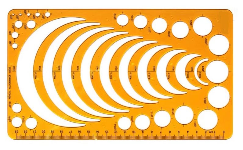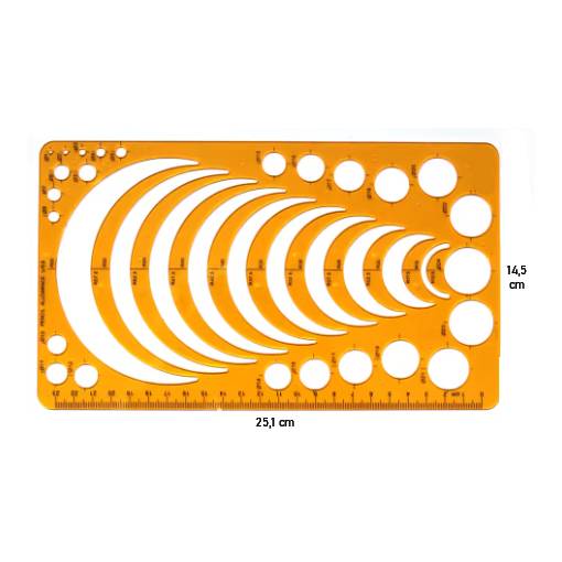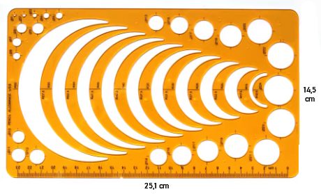 Umožňuje přesné rýsování kruhových a oválných tvarů v různých velikostech a zároveň slouží jako klasické pravítko.