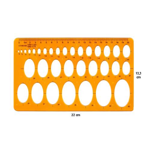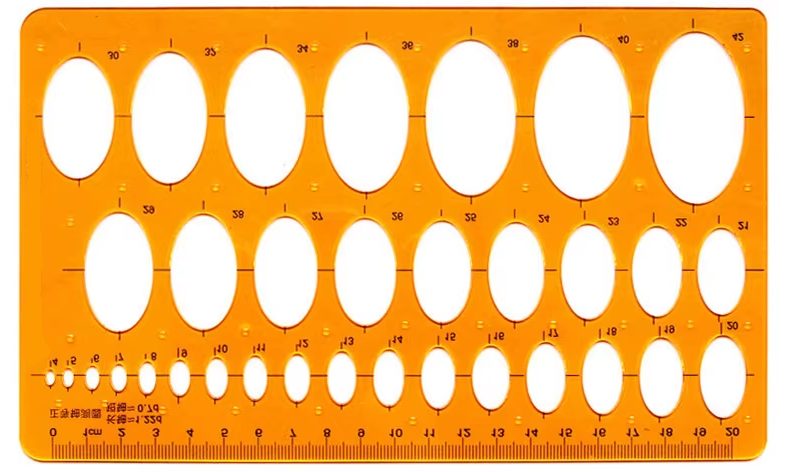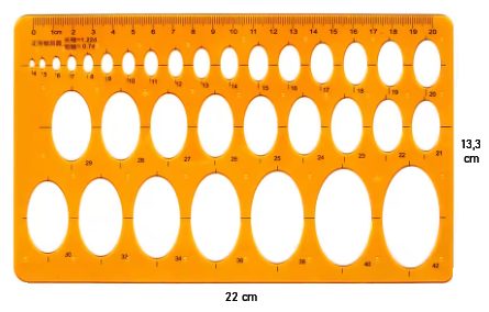 Umožňuje přesné rýsování kruhových a oválných tvarů v různých velikostech a zároveň slouží jako klasické pravítko.