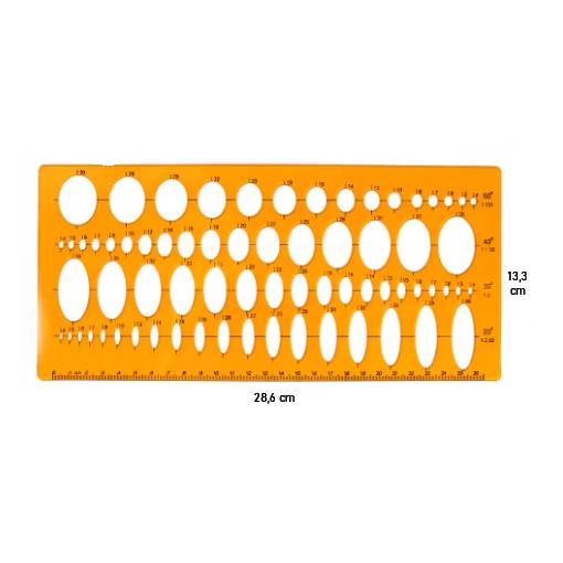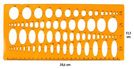 Umožňuje přesné rýsování kruhových a oválných tvarů v různých velikostech a zároveň slouží jako klasické pravítko.