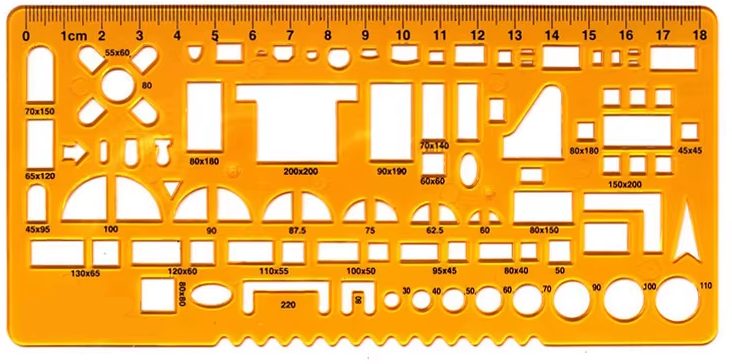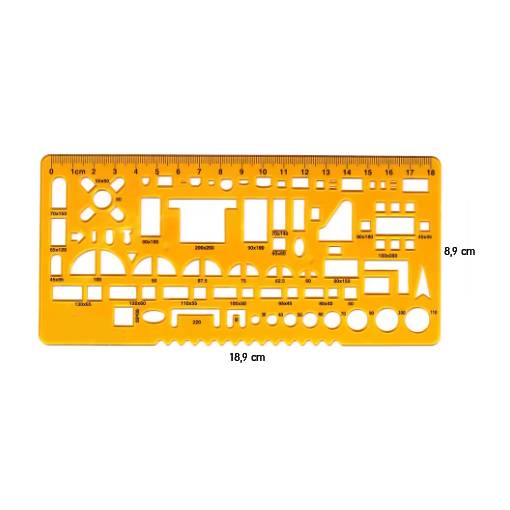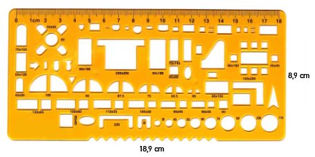 Umožňuje přesné rýsování kruhových a oválných tvarů v různých velikostech a zároveň slouží jako klasické pravítko.