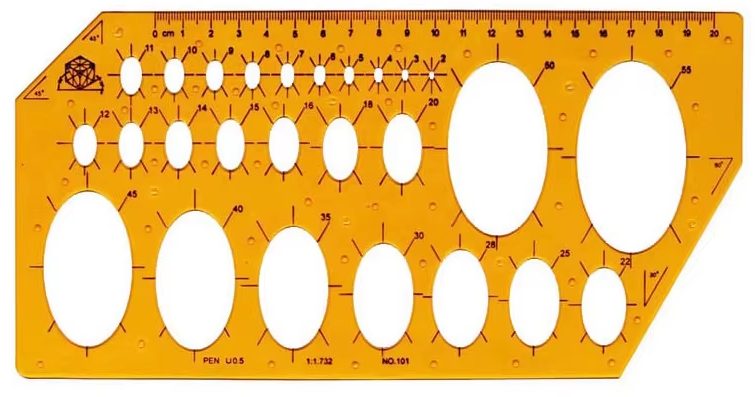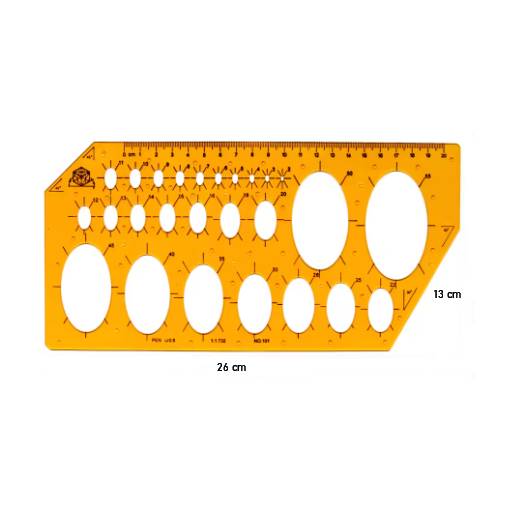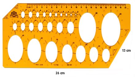 Umožňuje přesné rýsování kruhových a oválných tvarů v různých velikostech a zároveň slouží jako klasické pravítko.