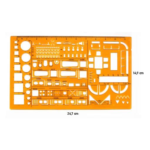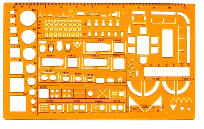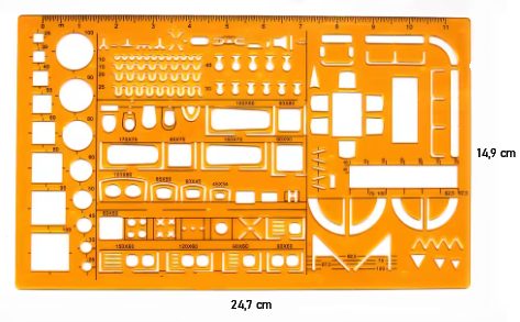 Umožňuje přesné rýsování kruhových a oválných tvarů v různých velikostech a zároveň slouží jako klasické pravítko.