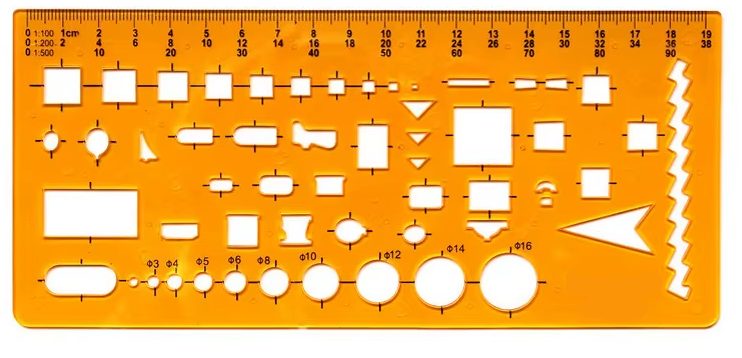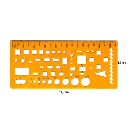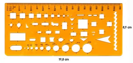 Umožňuje přesné rýsování kruhových a oválných tvarů v různých velikostech a zároveň slouží jako klasické pravítko.