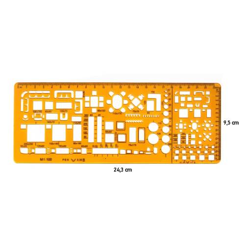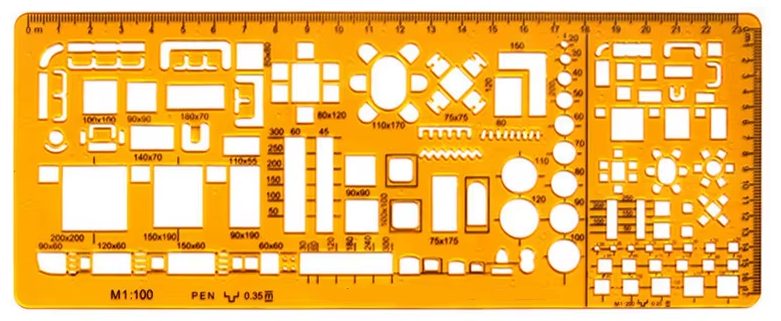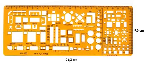 Umožňuje přesné rýsování kruhových a oválných tvarů v různých velikostech a zároveň slouží jako klasické pravítko.