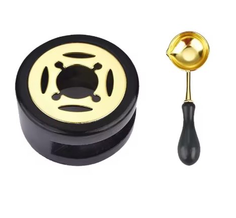 Sada je určena pro roztápění pečetního vosku a tvorbu dekorativních pečetí. Do držáku vložíte svíčku, nad plamen položte lžičku s kousky vosku, které se postupně roztaví.