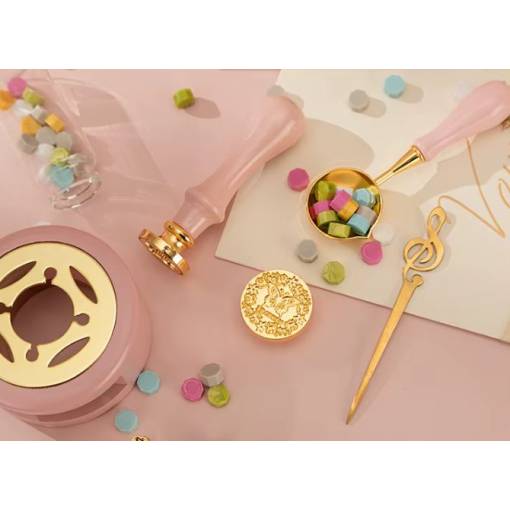Roztavený vosk lze poté nalít na papír, obálku či jiný povrch a vytvořit tak krásnou pečeť pomocí přiloženého razítka. Perfektní pro scrapbooking, dekorativní řemesla, tvorbu dárků nebo originální oznámení.