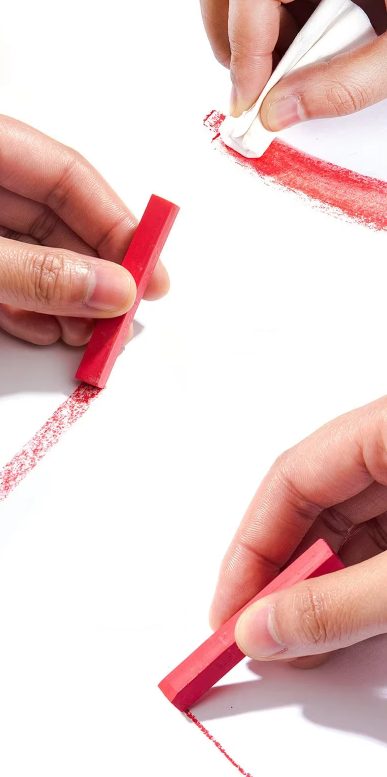 - Pastelové křídy mohou ušpinit ruce a pracovní plochu – doporučujeme používat podložku a umýt ruce po práci.