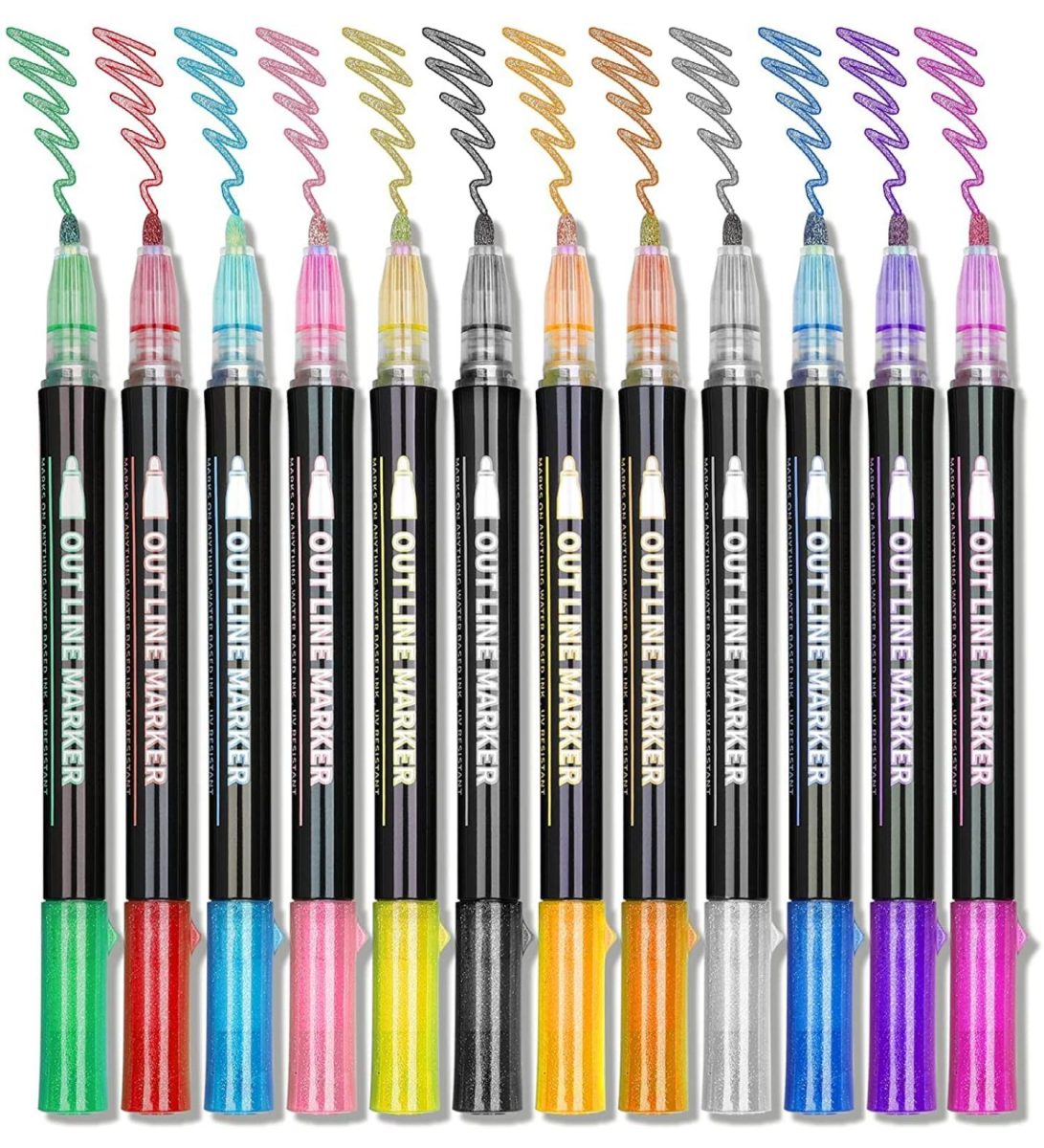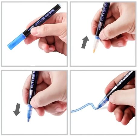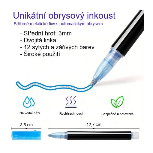 Díky speciálnímu obrysovému inkoustu vytvářejí fixy efektní dvojitou linku – lesklá barevná stopa je automaticky doplněna výrazným konturovým okrajem. Výsledkem jsou profesionálně vypadající a originální dekorace, které zaujmou na první pohled.