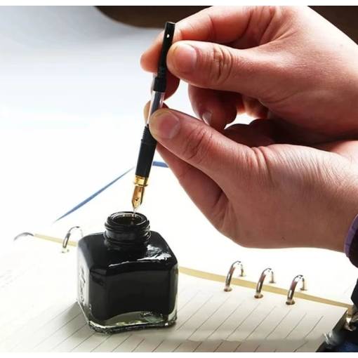 Konvertorem (plnitelným zásobníkem) – hrot pera se ponoří do lahvičky s inkoustem a otočením mechanismu se inkoust natáhne dovnitř zásobníku.