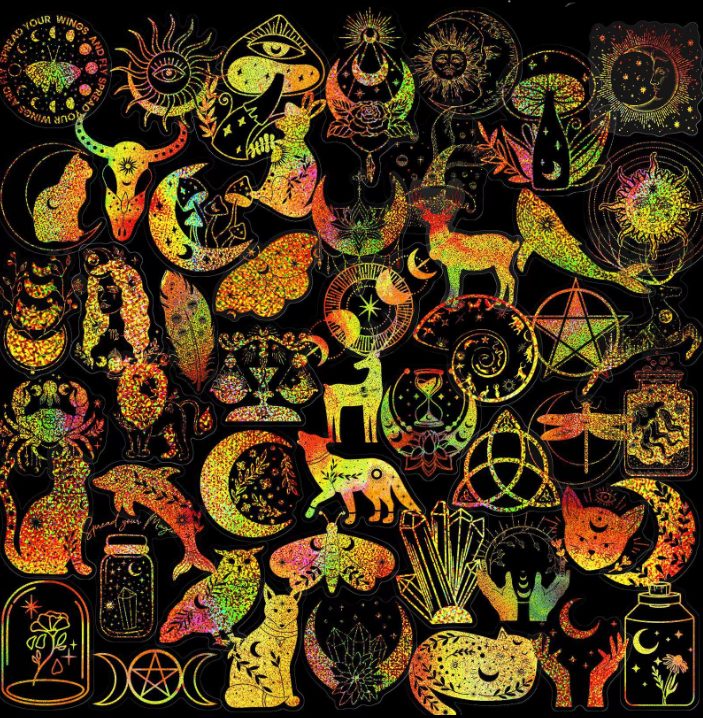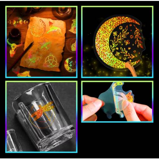Přidejte do svých scrapbookových projektů zlatý třpyt a magickou jiskru s těmito holografickými samolepkami! Set obsahuje 100 kusů průhledných PET samolepek s holografickým efektem, které dokonale ozvláštní vaše deníky, přání, brožury nebo fotoalba.
