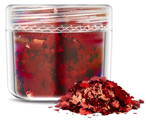 Díky nepravidelnému tvaru vloček vytvoříte přirozený „rozbitý“ metalický efekt, který působí mnohem zajímavěji než klasické třpytky.