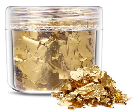 Luxusní dekorativní vločky z metalické fólie dodají vašim scrapbook projektům jedinečný třpytivý efekt. Jedná se o jemné, nepravidelné kousky fólie, které vytváří autentický vzhled zlata a působí velmi elegantně.