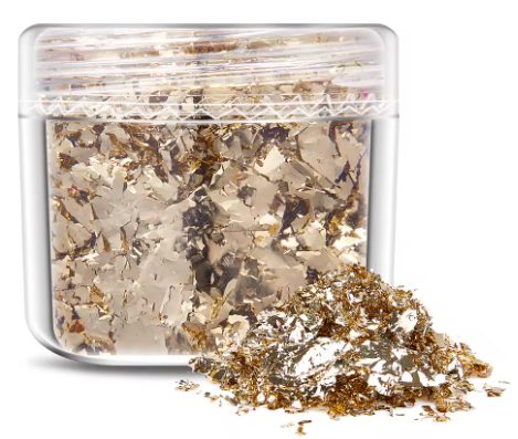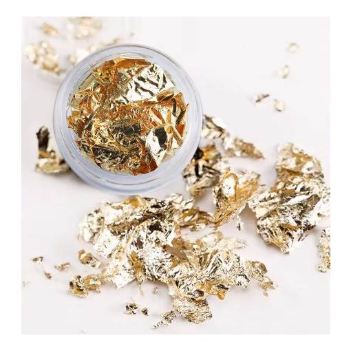 Luxusní dekorativní vločky z metalické fólie dodají vašim scrapbook projektům jedinečný třpytivý efekt. Jedná se o jemné, nepravidelné kousky fólie, které vytváří autentický vzhled zlata a působí velmi elegantně.