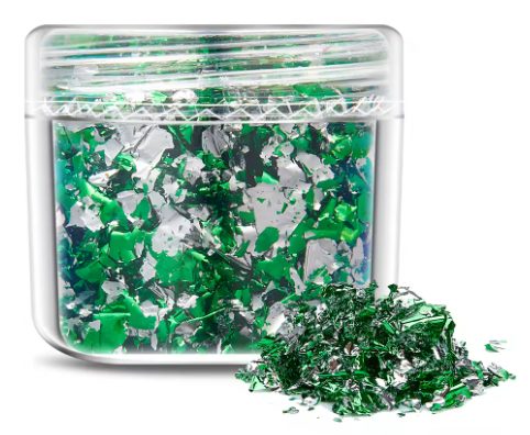 Díky nepravidelnému tvaru vloček vytvoříte přirozený „rozbitý“ metalický efekt, který působí mnohem zajímavěji než klasické třpytky.