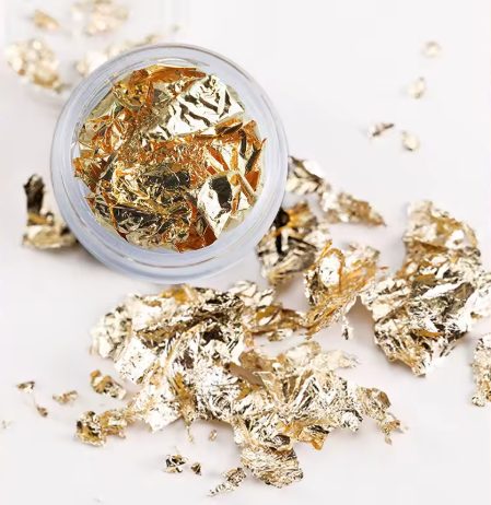 Luxusní dekorativní vločky z metalické fólie dodají vašim scrapbook projektům jedinečný třpytivý efekt. Jedná se o jemné, nepravidelné kousky fólie, které vytváří autentický vzhled zlata a působí velmi elegantně.