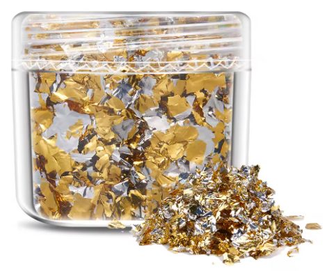 Luxusní dekorativní vločky z metalické fólie dodají vašim scrapbook projektům jedinečný třpytivý efekt. Jedná se o jemné, nepravidelné kousky fólie, které vytváří autentický vzhled zlata a působí velmi elegantně.
