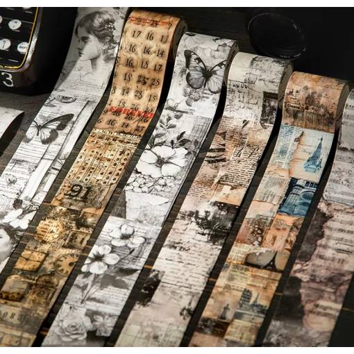 Ponořte se do světa nostalgie a kreativity s dekorativní páskou. Tato elegantní vintage páska s motivem starých knižních stránek je ideálním doplňkem pro každý diář, plánovač nebo scrapbook. Přineste do svých projektů jemný retro nádech a oživte je originálním způsobem.